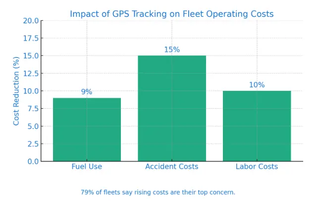 Rising costs are the top concern for 79% of fleets. Operators using GPS tracking have cut fuel use by 9%, accident-related expenses by 15%, and labor costs by 10%.